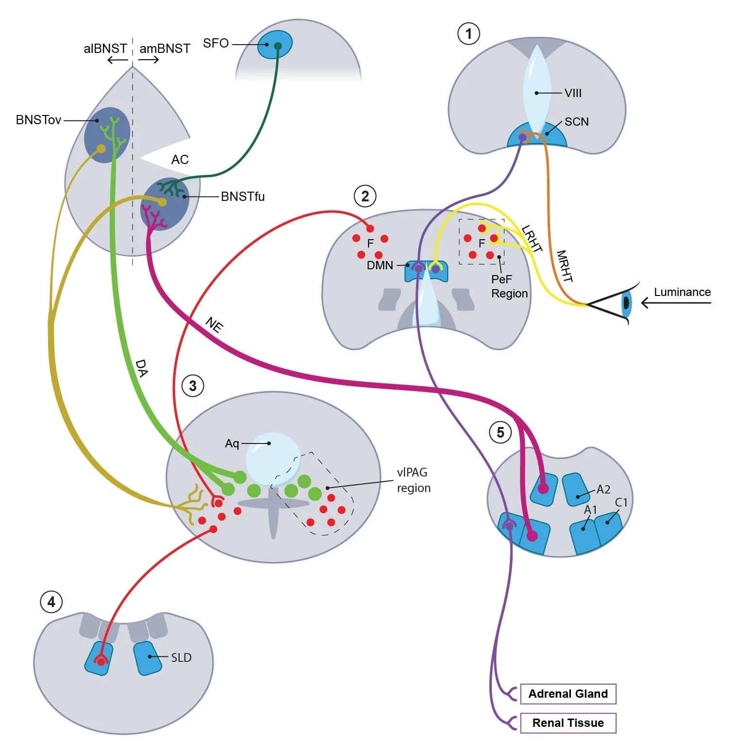 This series of figures was created for “The Elusive “Switch Process” in Bipolar Disorder and Photoperiodism: A Hypothesis Centering on NADPH Oxidase-Generated Reactive Oxygen Species Within the Bed Nucleus of the Stria Terminalis” by Martin Raitiere, published in the journal Frontiers in Psychiatry in 2022.