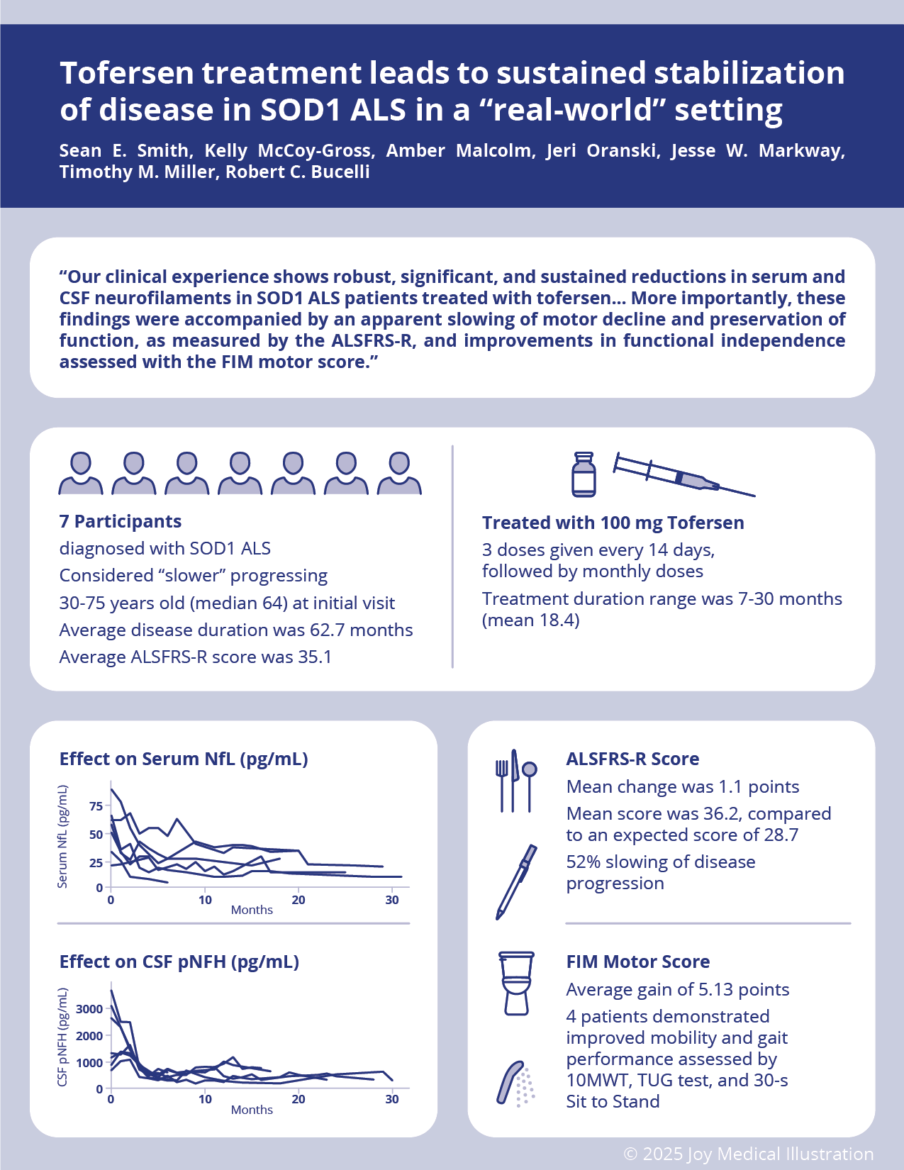 Graphical Abstract, Tofersen Treatment Leads to Sustained Stabilization of Disease in SOD1 ALS in a “Real-World” Setting